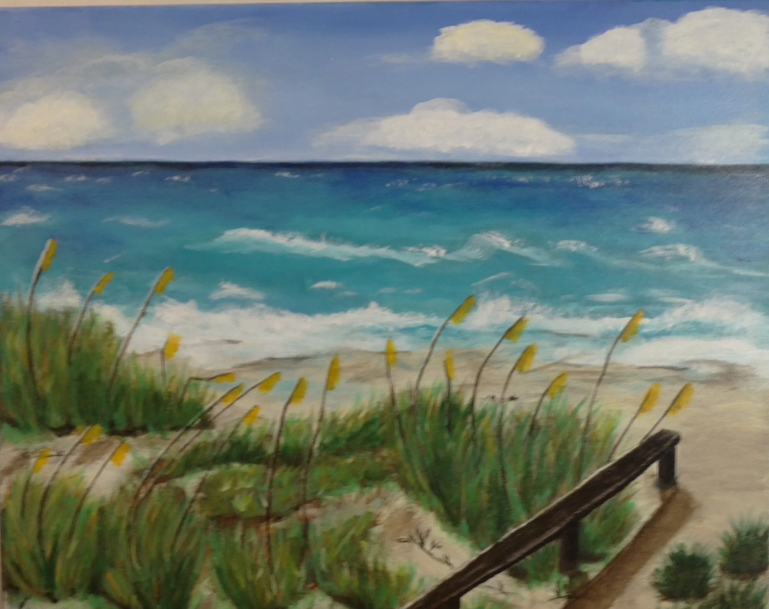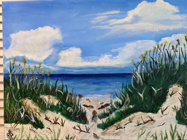 A quiet path opens toward the sea - an invitation into light, movement, and possibility. The layered brushwork and open horizon create a sense of both journey and arrival, echoing the quiet power found in nature’s transitions.
